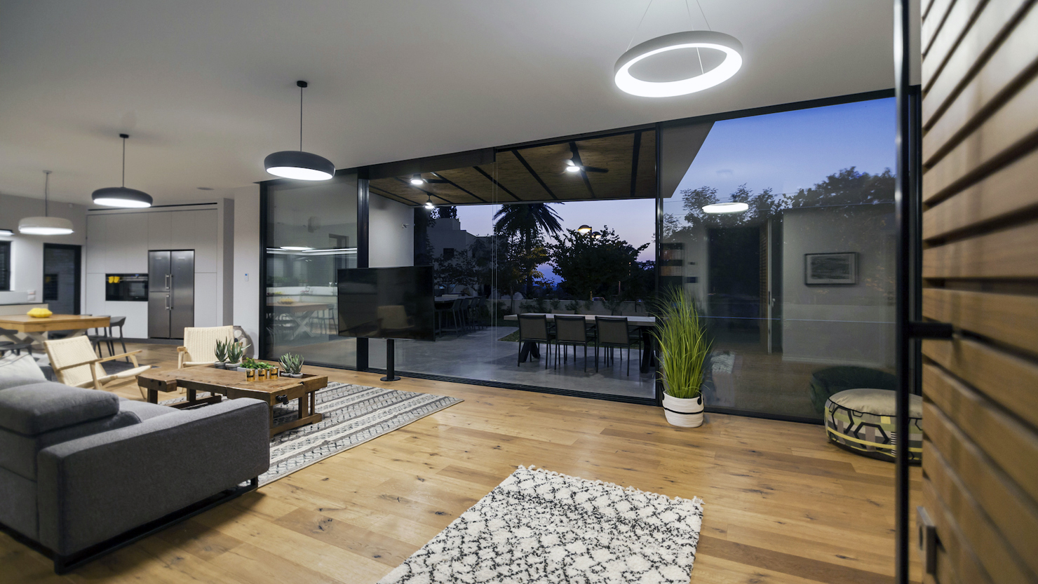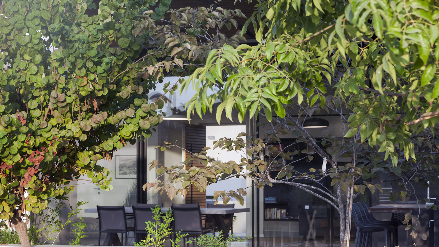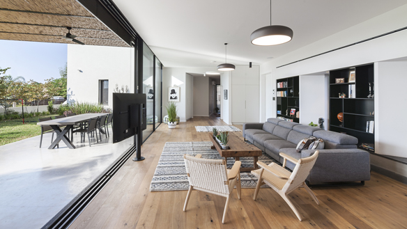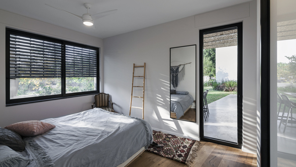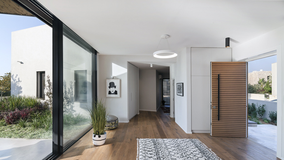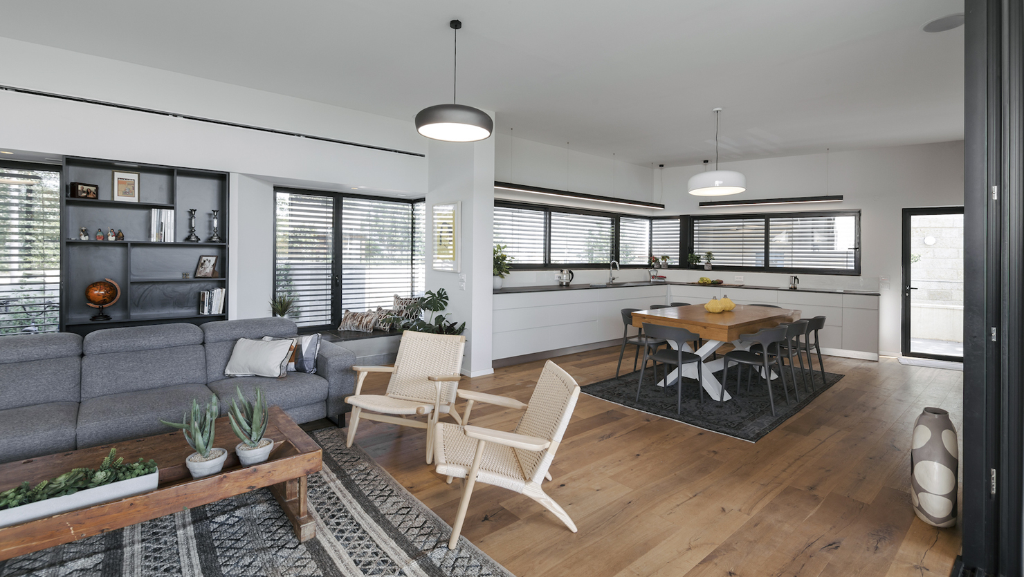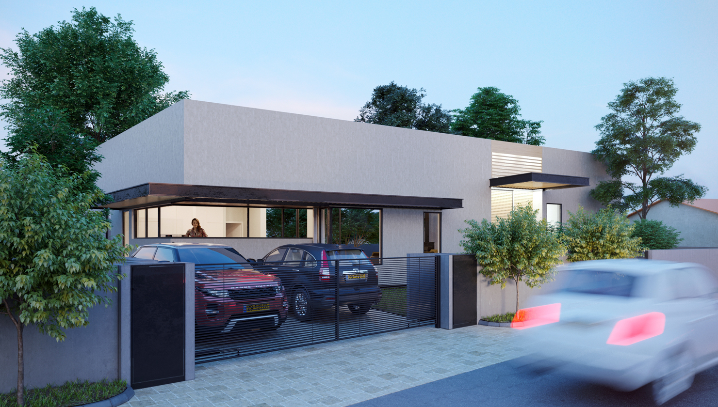 הבית, שתוכנן עבור משפחה, בנוי כסהר סביב החצר. במרכז הסהר- המרחב הציבורי ובקצותיו- חדרי המגורים.