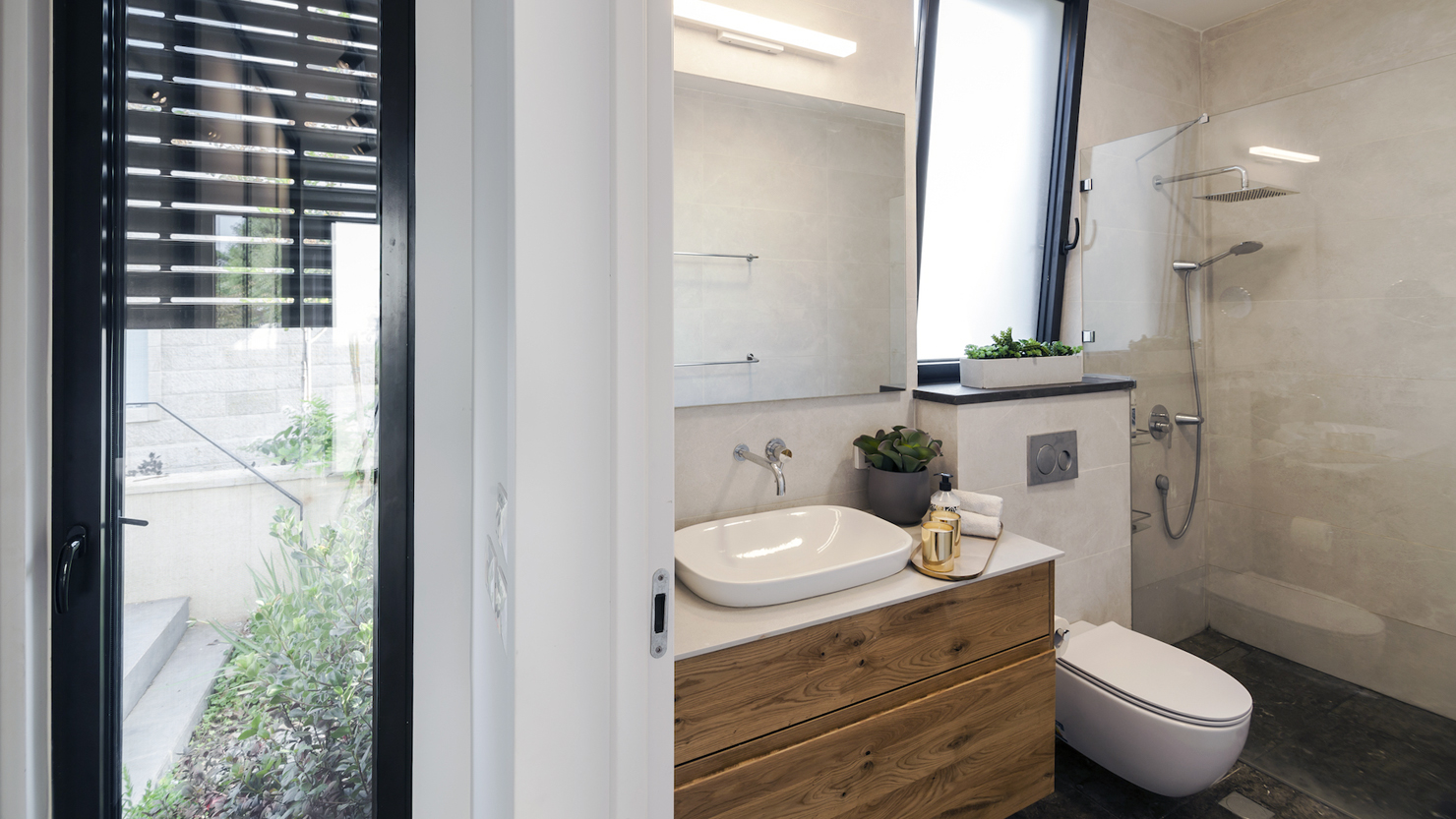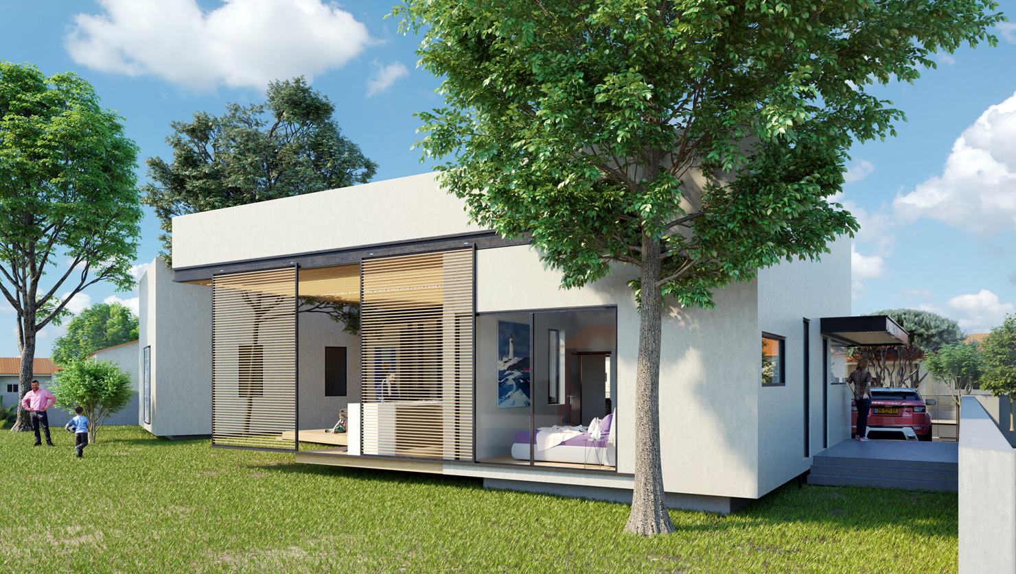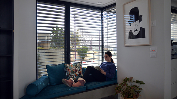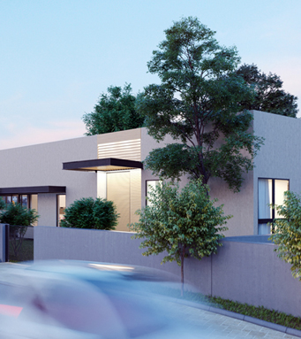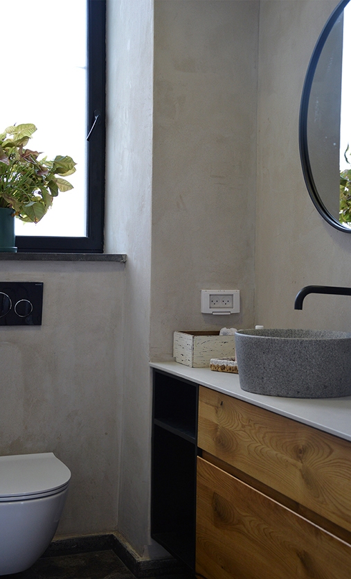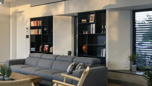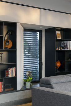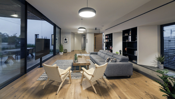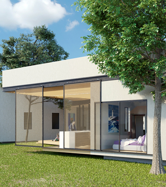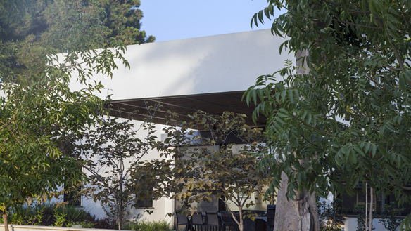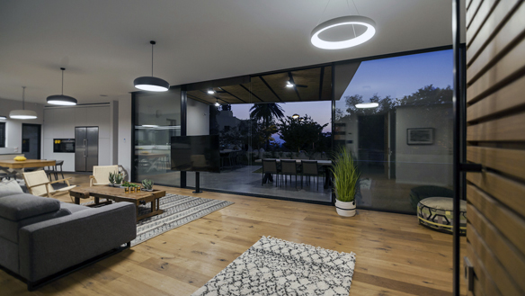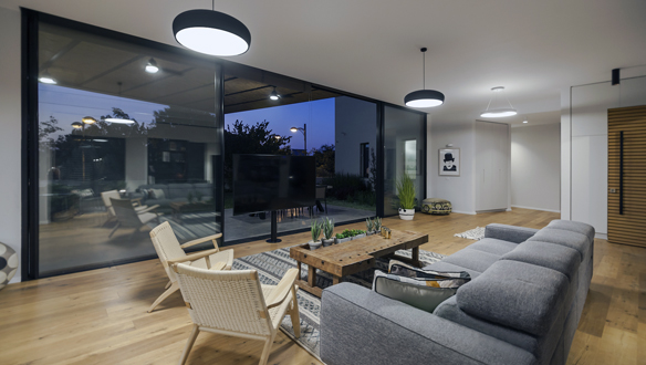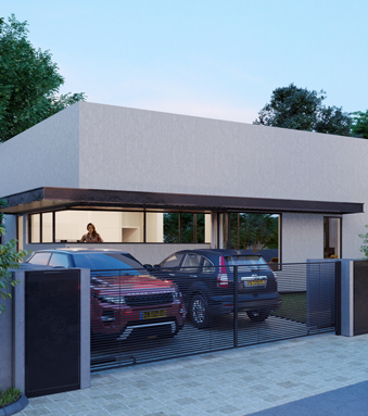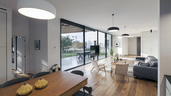 הבית, שתוכנן עבור משפחה, בנוי כסהר סביב החצר. במרכז הסהר- המרחב הציבורי ובקצותיו- חדרי המגורים.