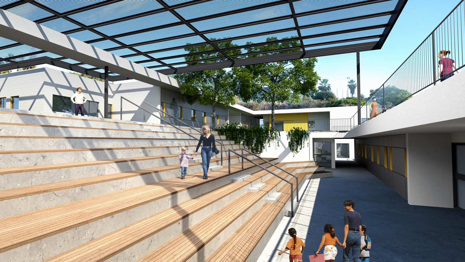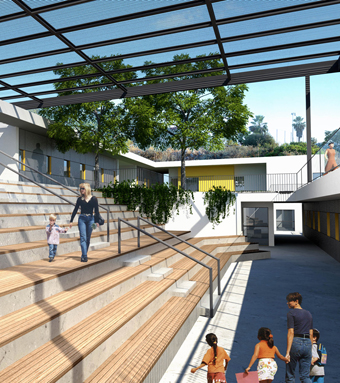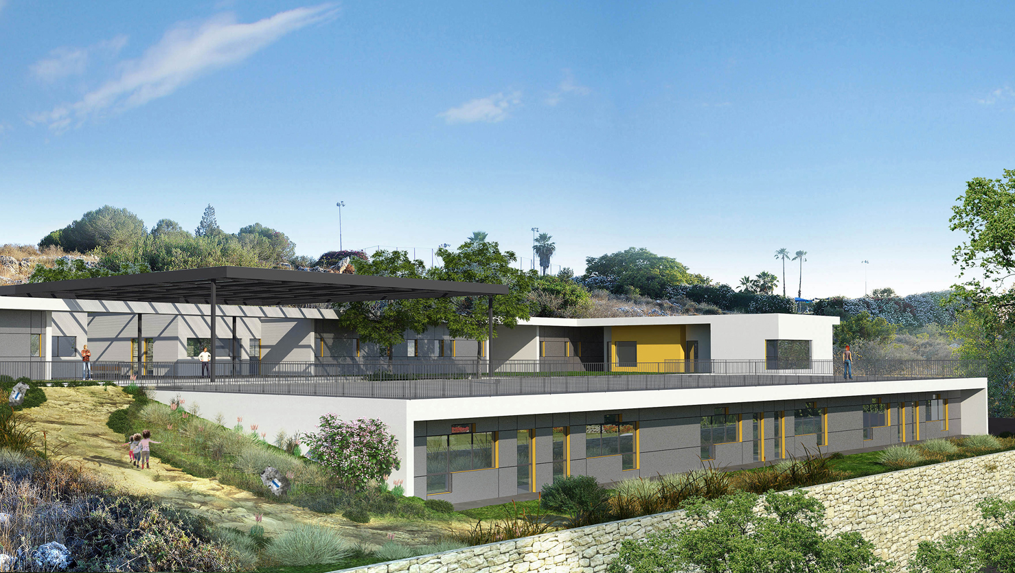 בי"ס יסודי, בנוי על מדרון צפוני תלול בישוב סלעית. שני מפלסים מחלקים את 12 כיתות בית הספר. בתווך, אמפי המקשר בין המפלסים ומאפשר מקום התכנסות. בשל שיטת הלימוד המונטסורית המושטטת בבית הספר, כל שתי כיתות אוחדו לחלל אחד יחד עם שטחי המסדרון והכיתות היעודיות ויצרו את מרחב "הבית". בכל מרחב מטבח, שירותים וחצר פרטית בנוסף לחצר המרכזית של בית הספר הממוקמת ברובה על גג המפלס התחתון.